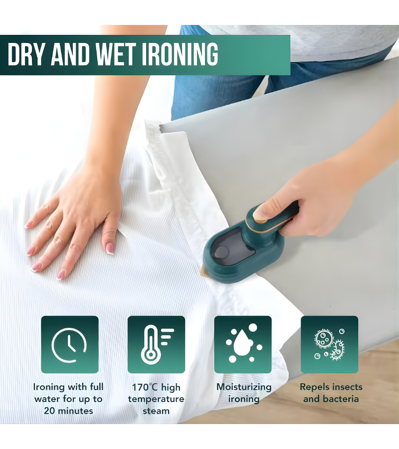 Iron anywhere effortlessly with the Mini 180° Rotatable Handheld Steam Iron. Compact, foldable, and travel-friendly, it delivers powerful steam for quick wrinkle removal on all fabric types, giving a crisp, professional finish.