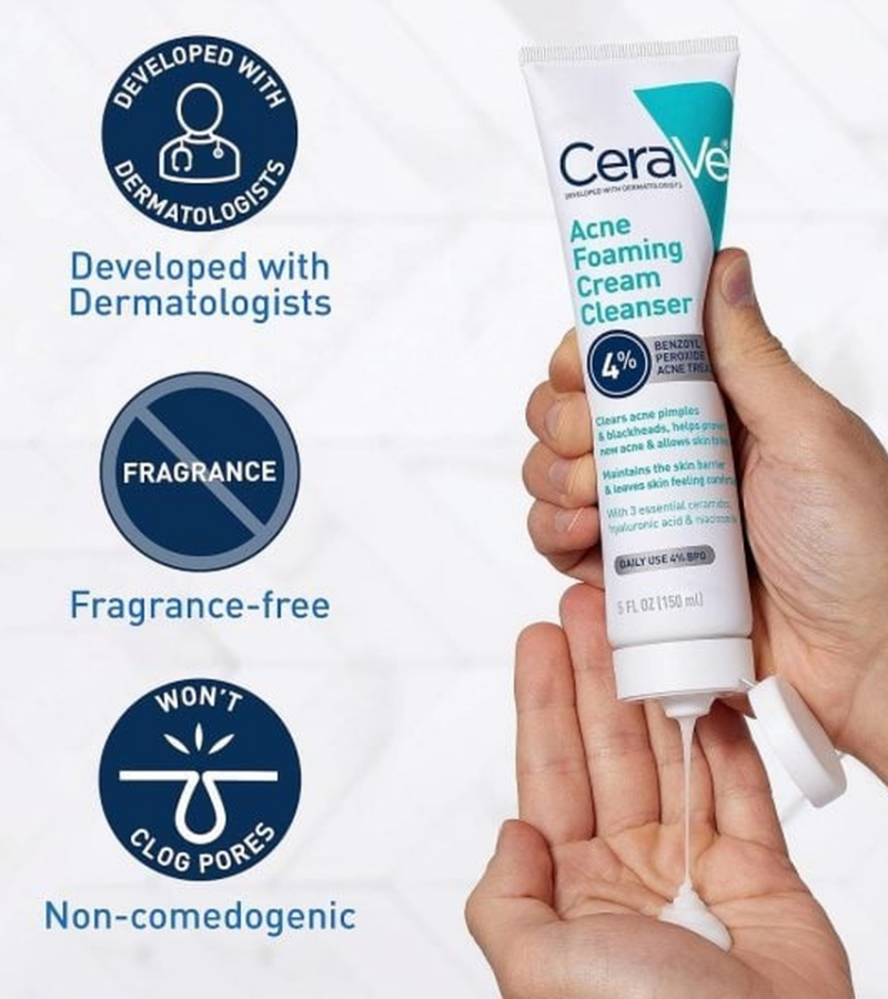 🧴 CeraVe Acne Foaming Cream Cleanser (4% Benzoyl Peroxide)